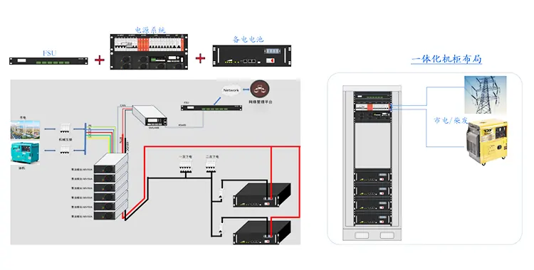 组成:整流电源 + 光伏电源框 + 电池 + 柴发 + FSU